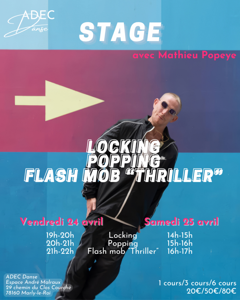 Locking, lyrical jazz, popping, la préparation d’un flashmob sur le thème de « Thriller », breakdance, hip-hop et même un atelier parents-enfants pour vous amuser en famille !